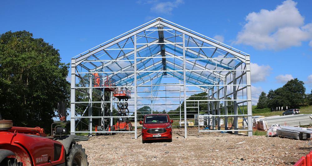 At Beacon Down, the sloping site required significant groundworks to create a level platform that set the building discreetly within the landscape. The result was a 30m x 16m fully insulated facility, timber-clad on the front elevation to soften its appearance. With a power-floated floor, integrated drainage, septic and storage tanks, and access tracks, the project combined practicality with sensitivity to its beautiful countryside setting.
